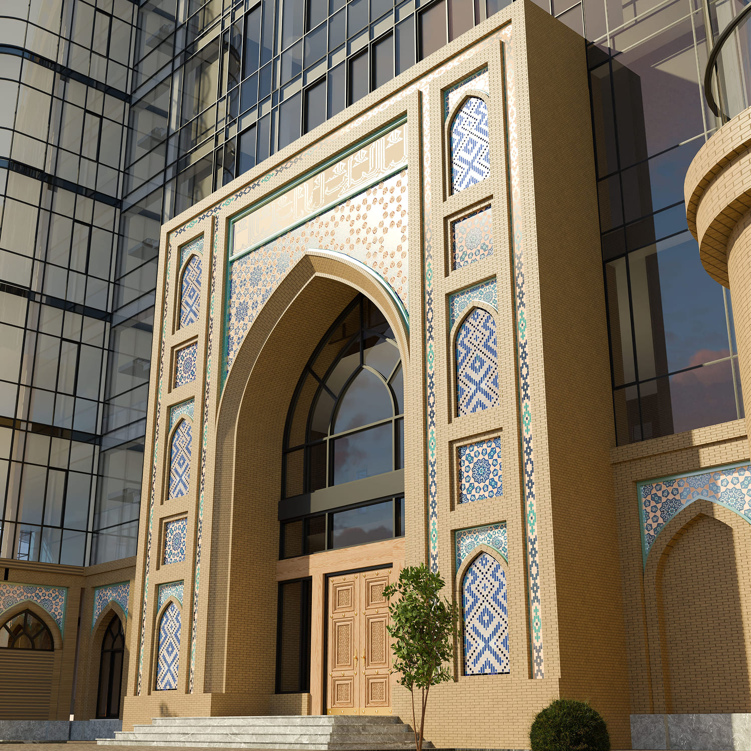 Проработка архитектурного облика здания, фасадных решений, освещения и элементов благоустройства.