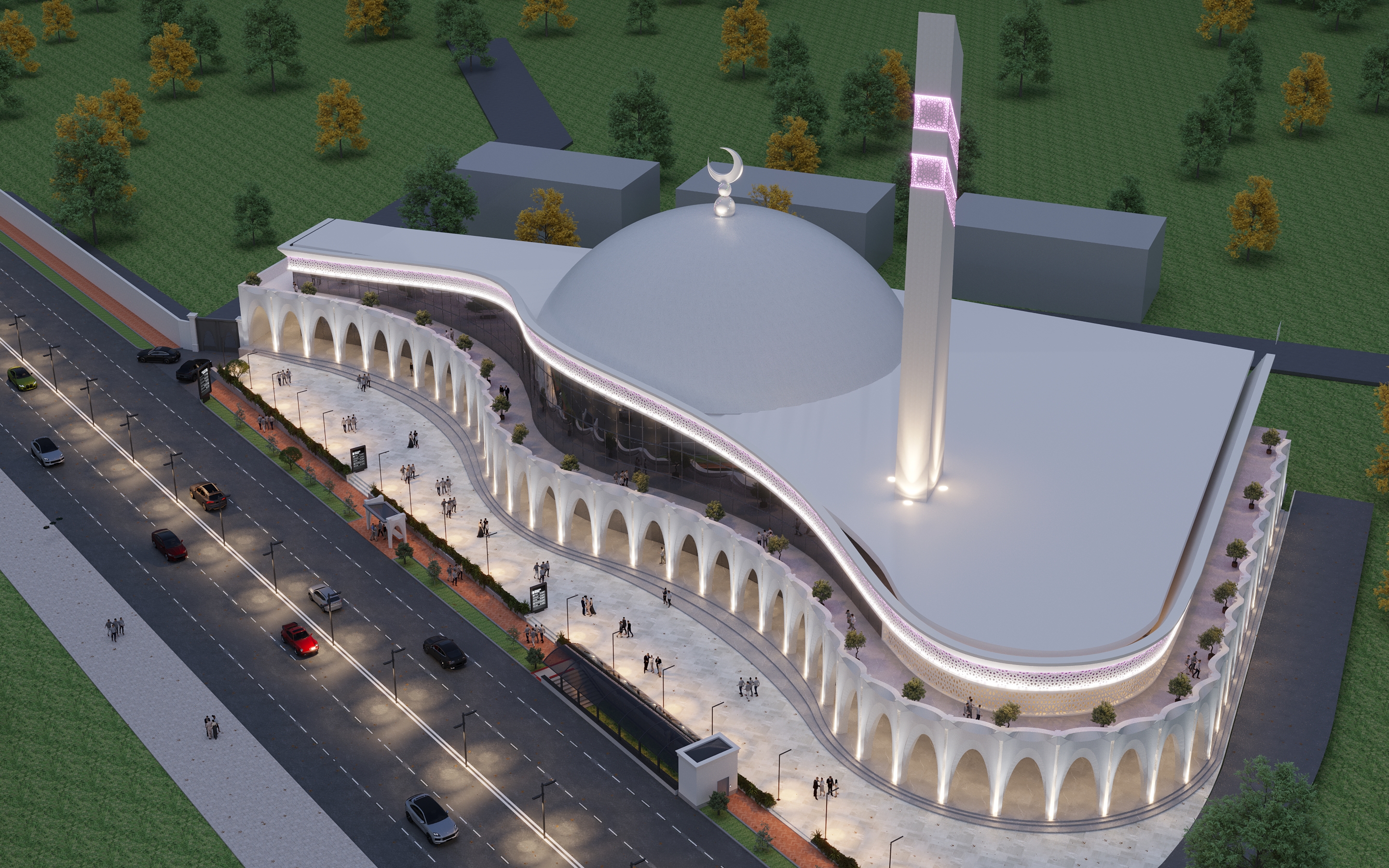 Современная мечеть без излишеств — визуально лёгкая, технологически продуманная и духовно возвышенная. Пространство создаёт ощущение умиротворённости за счёт естественного освещения, чистых форм и сочетания стекла, бетона и металла.